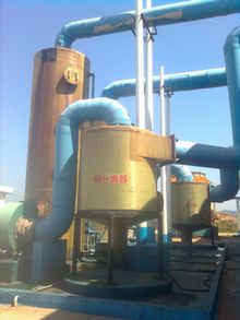 2、2、本設(shè)備由外筒與內(nèi)筒組成,合理的結(jié)構(gòu)使含水氣體在本設(shè)備內(nèi)部繞心筒旋轉(zhuǎn),在離心力的作用下使汽液能夠完全分離,并將液體導(dǎo)入本設(shè)備的排水口,氣體則經(jīng)過組合式除霧裝置,在風(fēng)機(jī)的作用下,通過管道進(jìn)入無填料噴霧式凈化塔,